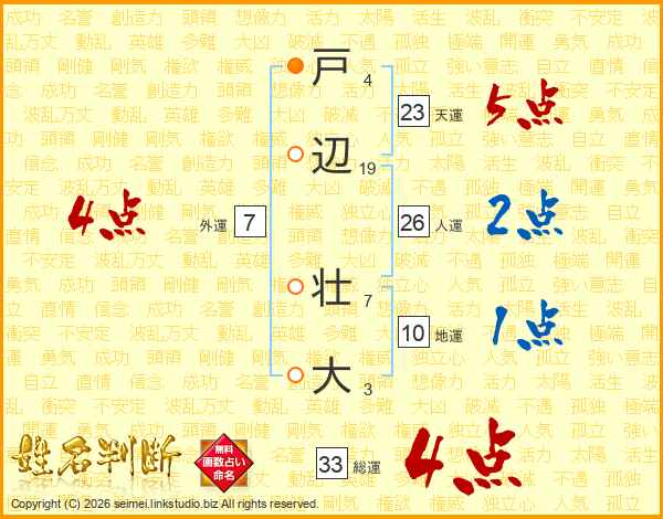 戸辺壮大さんの総運は33画の4点!