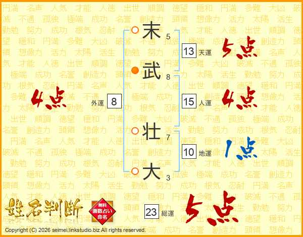 末武壮大さんの総運は23画の5点!