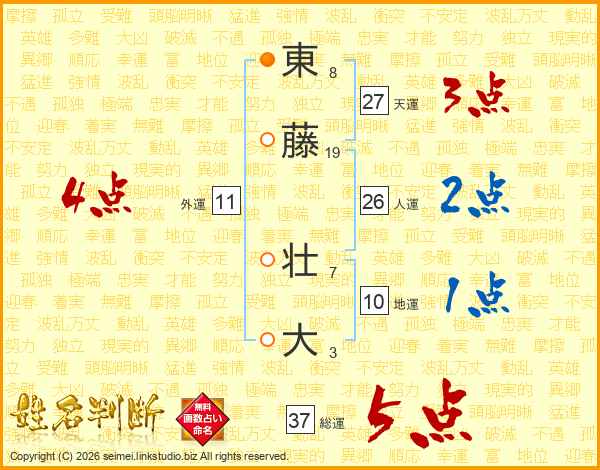 東藤壮大さんの総運は37画の5点!