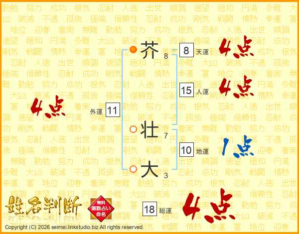 芥壮大さんの人運は15画の4点!