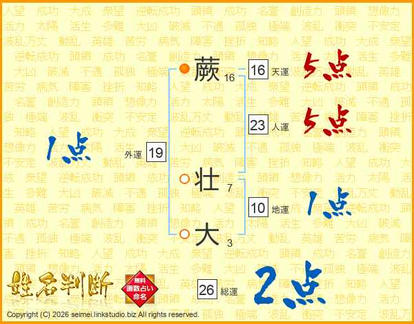 蕨壮大さんの天運は16画の5点!