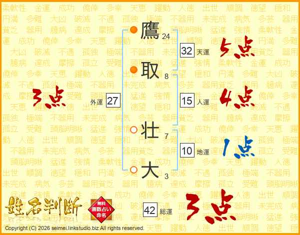 鷹取壮大さんの総運は42画の3点!