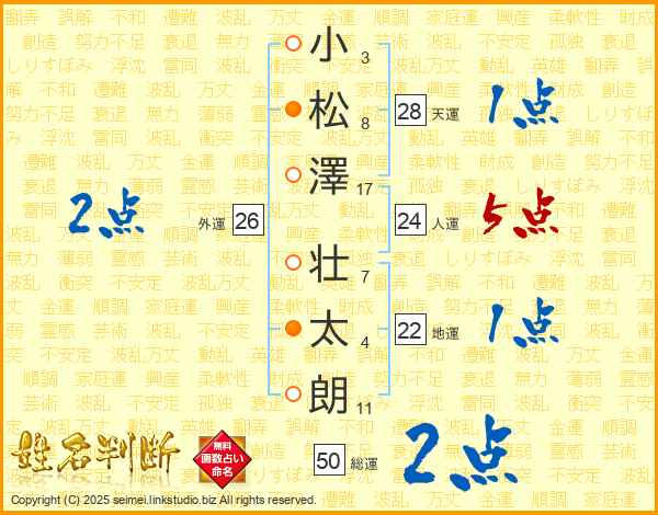 小松澤壮太朗さんの人運は24画の5点!
