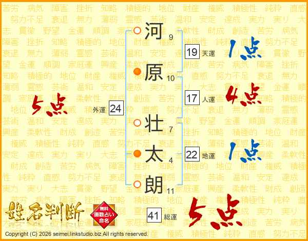 河原壮太朗さんの総運は41画の5点!