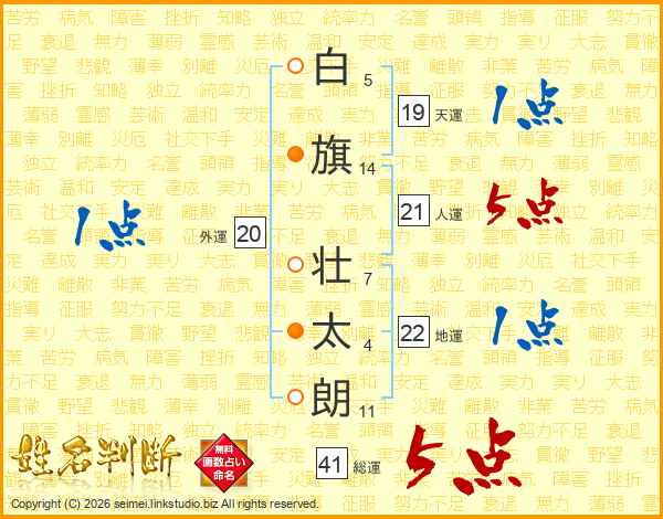 白旗壮太朗さんの人運は21画の5点!