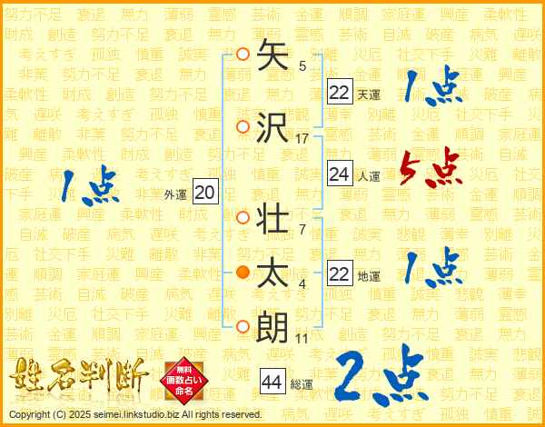 矢沢壮太朗さんの総運は44画の2点!