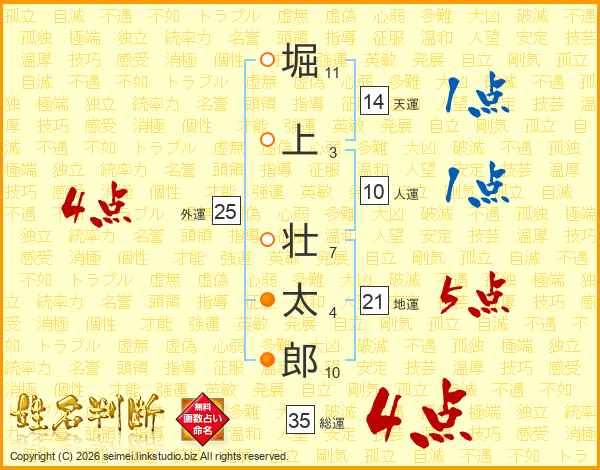 堀上壮太郎さんの総運は35画の4点!