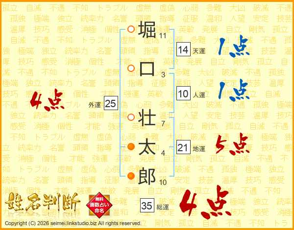 堀口壮太郎さんの天運は14画の1点!