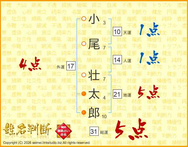 小尾壮太郎さんの総運は31画の5点!