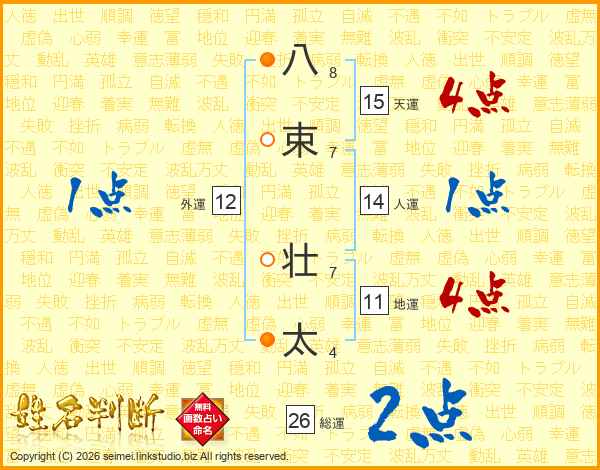 八束壮太さんの総運は26画の2点!