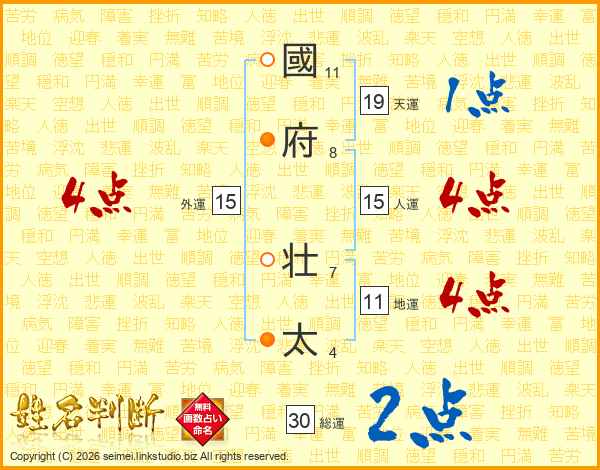 國(11画)府(8画) 壮(7画)太(4画)