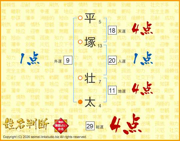 平塚壮太さんの総運は29画の4点!