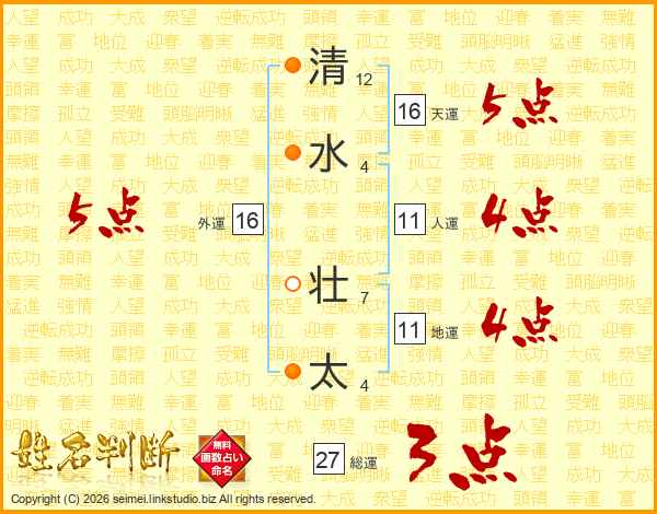 清水壮太さんの天運は16画の5点!