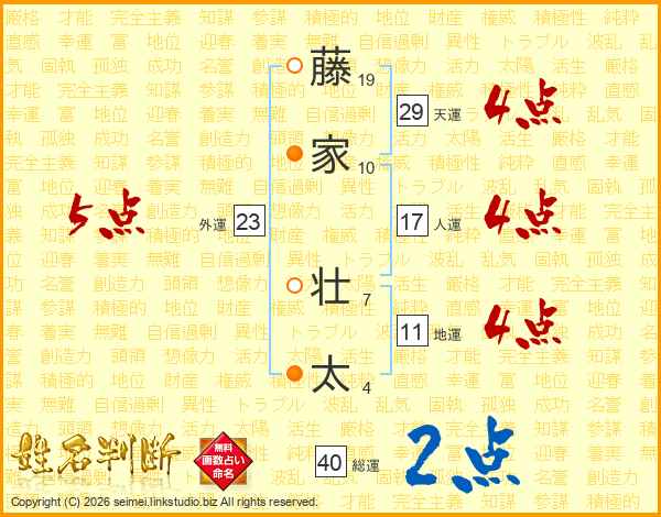藤家壮太さんの総運は40画の2点!