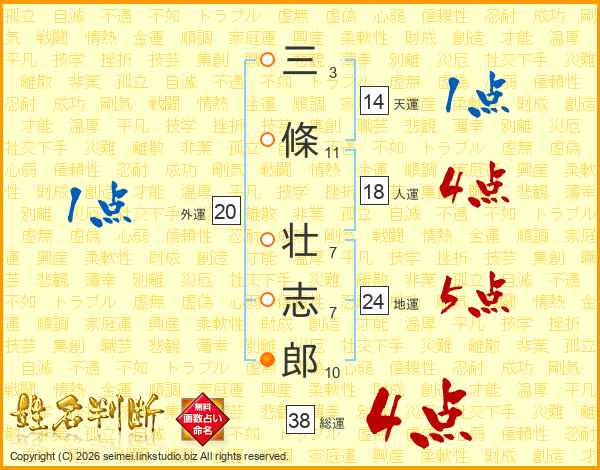 三(3画)條(11画) 壮(7画)志(7画)郎(10画)