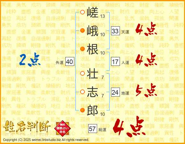 嵯峨根壮志郎さんの天運は33画の4点!