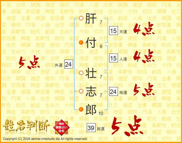 肝付壮志郎さんの総運は39画の5点!