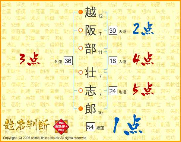 越阪部壮志郎さんの総運は54画の1点!
