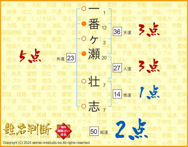 一番ヶ瀬壮志さんの人運は27画の3点!