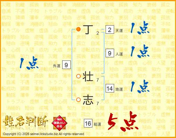 丁壮志さんの総運は16画の5点!