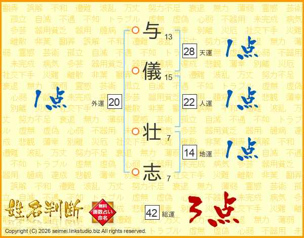 与儀壮志さんの人運は22画の1点!