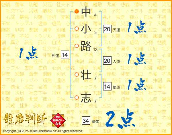 中小路壮志さんの天運は20画の1点!