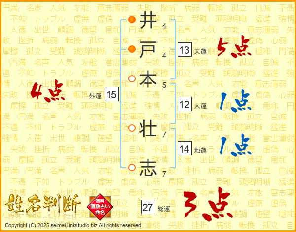 井戸本壮志さんの天運は13画の5点!