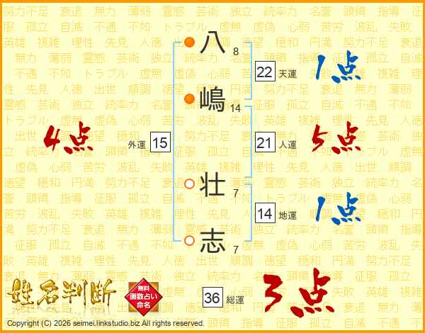 八(8画)嶋(14画) 壮(7画)志(7画)