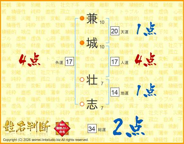 兼城壮志さんの人運は17画の4点!