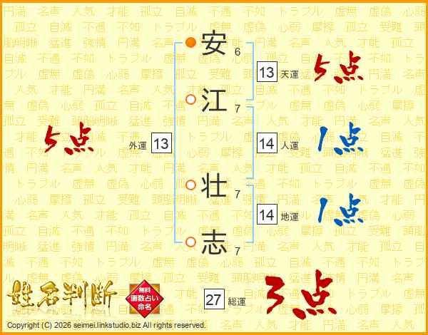 安江壮志さんの天運は13画の5点!
