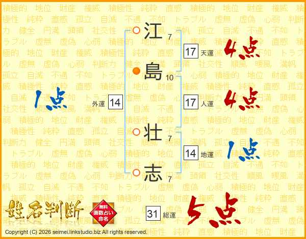 江(7画)島(10画) 壮(7画)志(7画)
