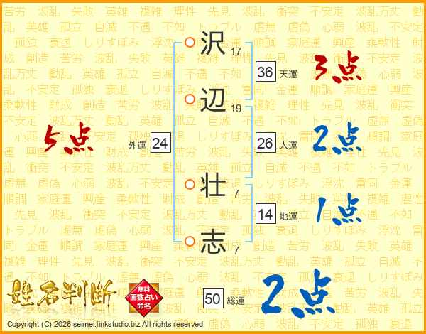 沢辺壮志さんの人運は26画の2点!