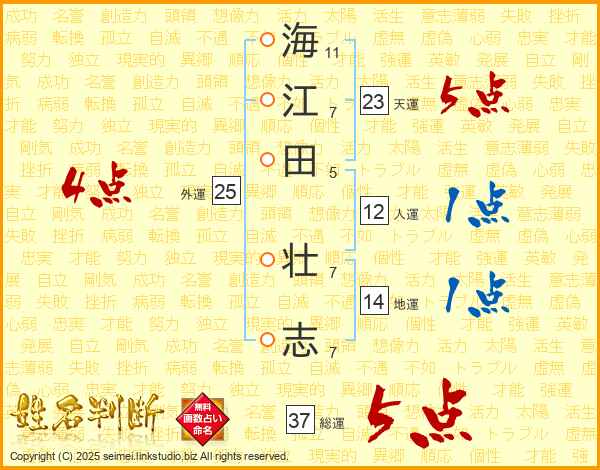 海江田壮志さんの総運は37画の5点!