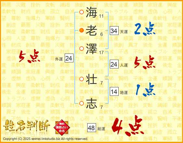 海(11画)老(6画)澤(17画) 壮(7画)志(7画)