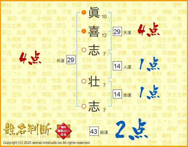 眞(10画)喜(12画)志(7画) 壮(7画)志(7画)