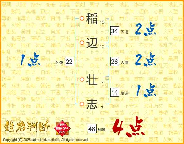 稲辺壮志さんの総運は48画の4点!
