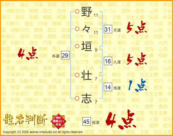 野々垣壮志さんの天運は31画の5点!