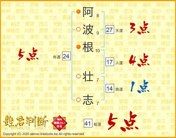 阿波根壮志さんの総運は41画の5点!