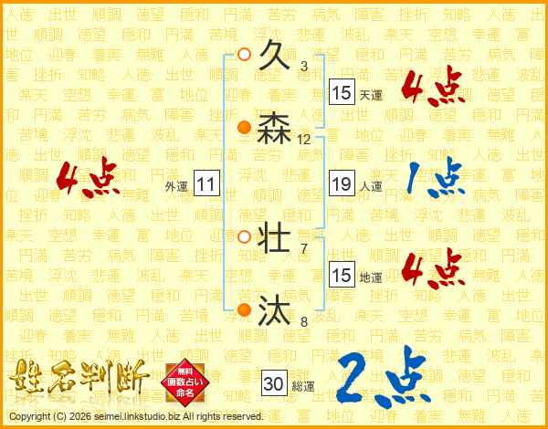 久森壮汰さんの総運は30画の2点!