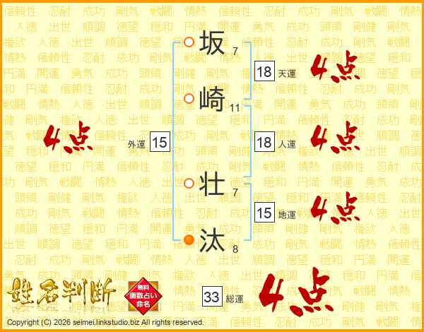 坂崎壮汰さんの総運は33画の4点!