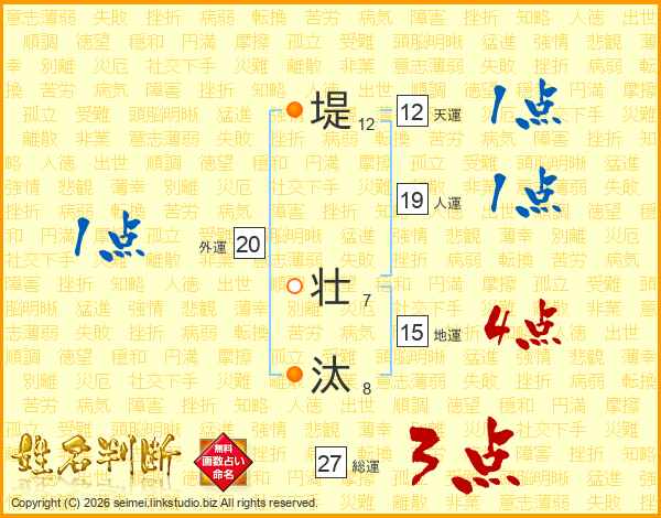 堤壮汰さんの総運は27画の3点!