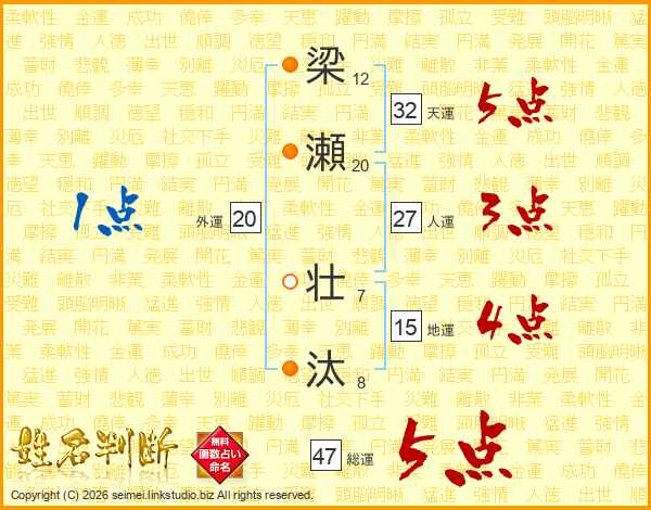 梁瀬壮汰さんの総運は47画の5点!