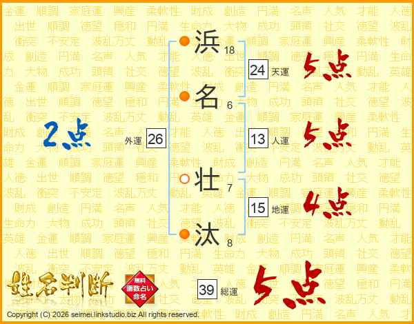 浜名壮汰さんの総運は39画の5点!