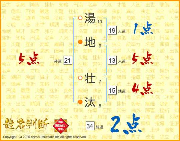 湯地壮汰さんの総運は34画の2点!