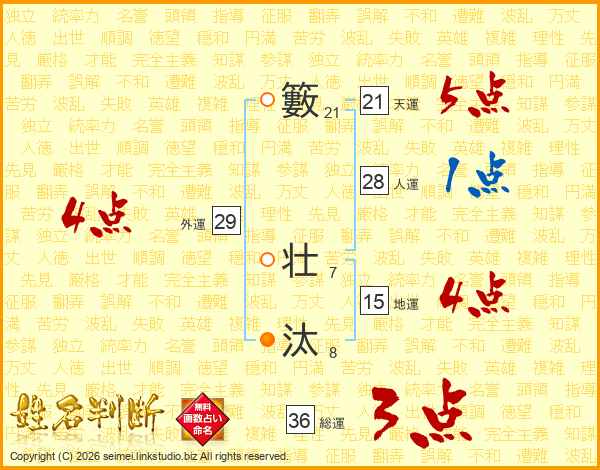 籔壮汰さんの総運は36画の3点!