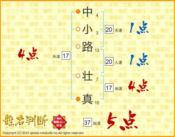 中小路壮真さんの総運は37画の5点!