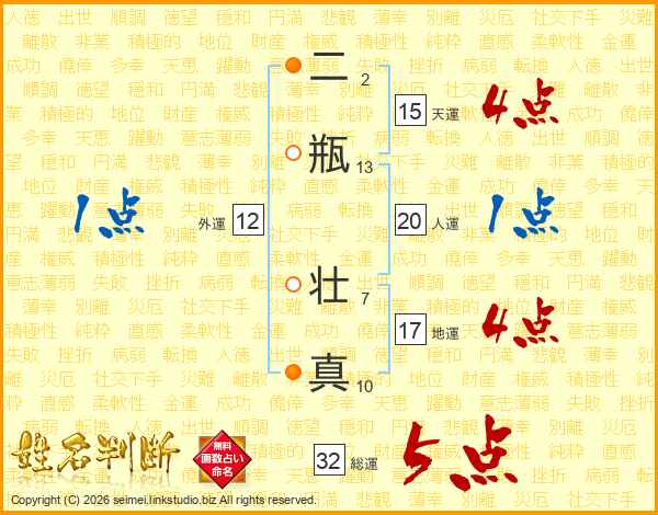 二瓶壮真さんの総運は32画の5点!
