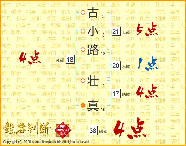 古小路壮真さんの総運は38画の4点!