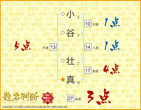 小谷壮真さんの総運は27画の3点!
