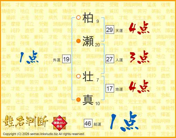 柏瀬壮真さんの総運は46画の1点!